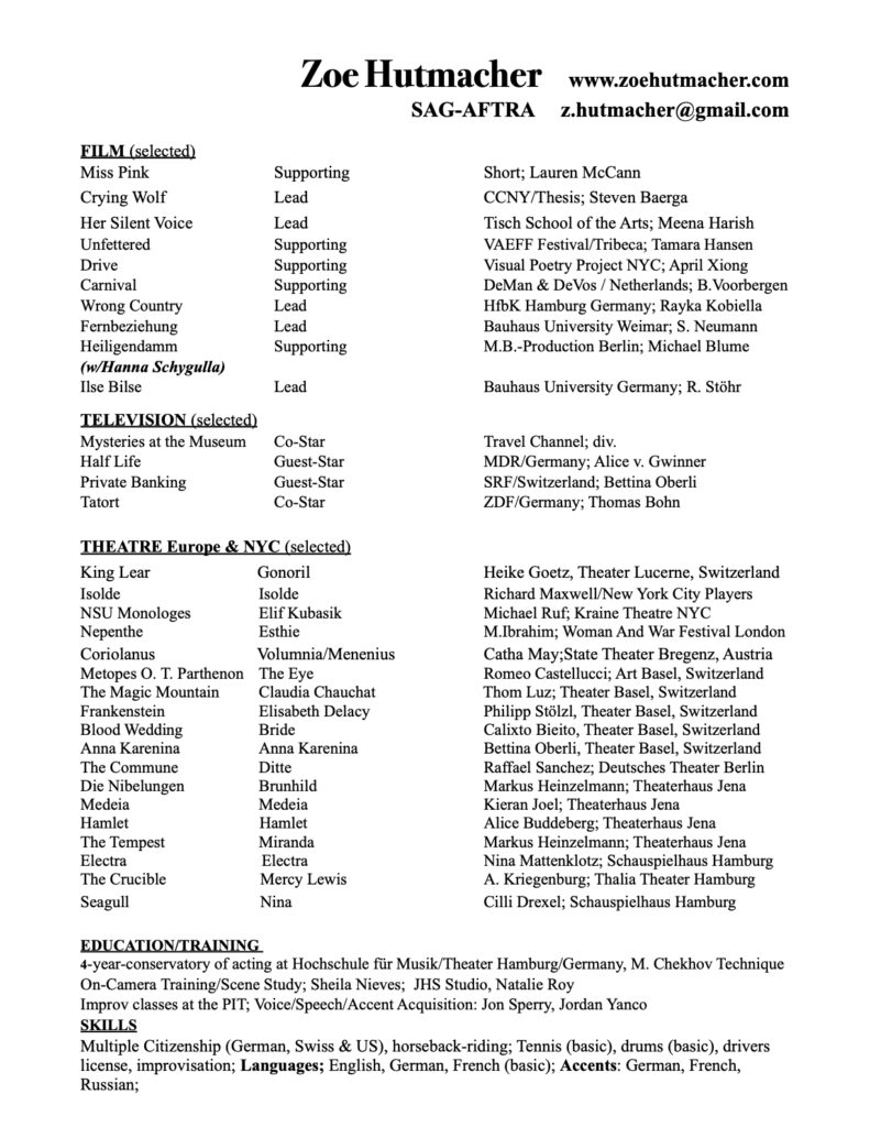 After graduating a 4-year- conservatory of acting in Hamburg she began honing and mastering her craft in theaters all over Europe, from classical to contemporary.
